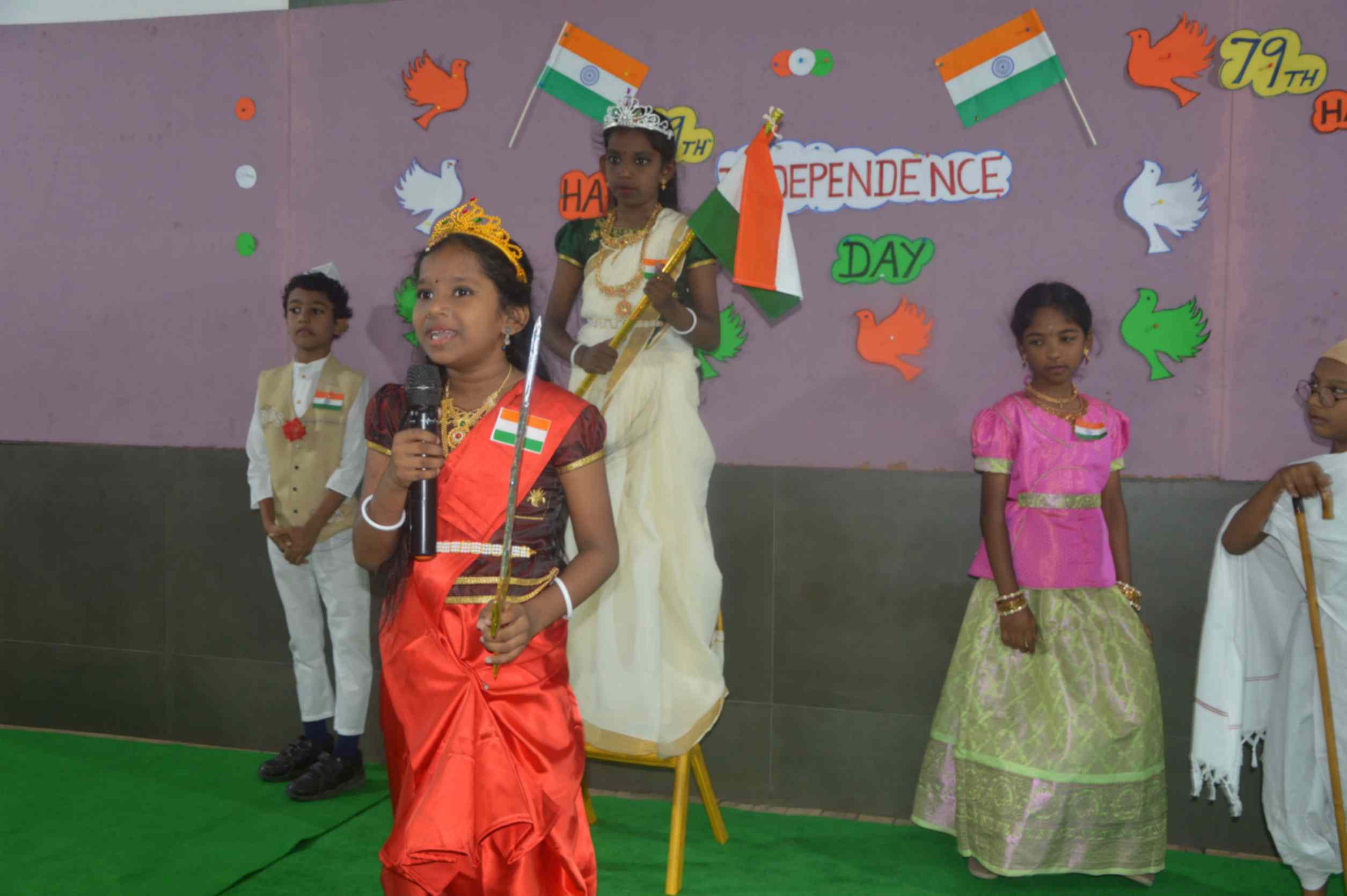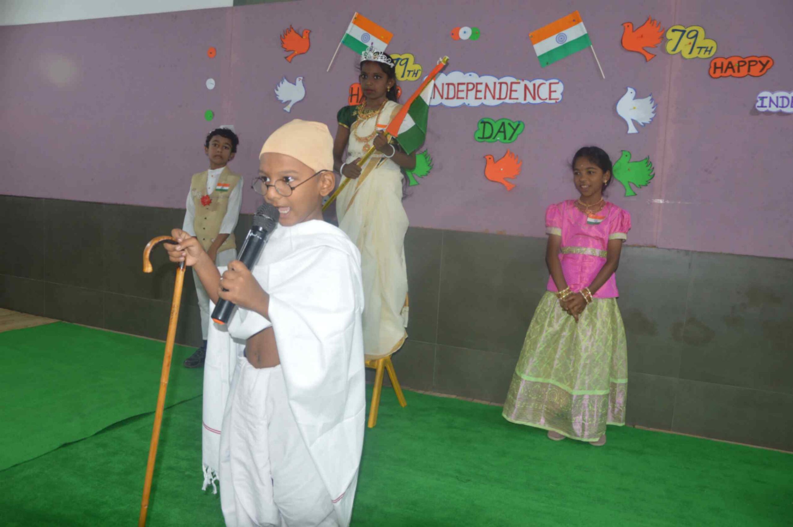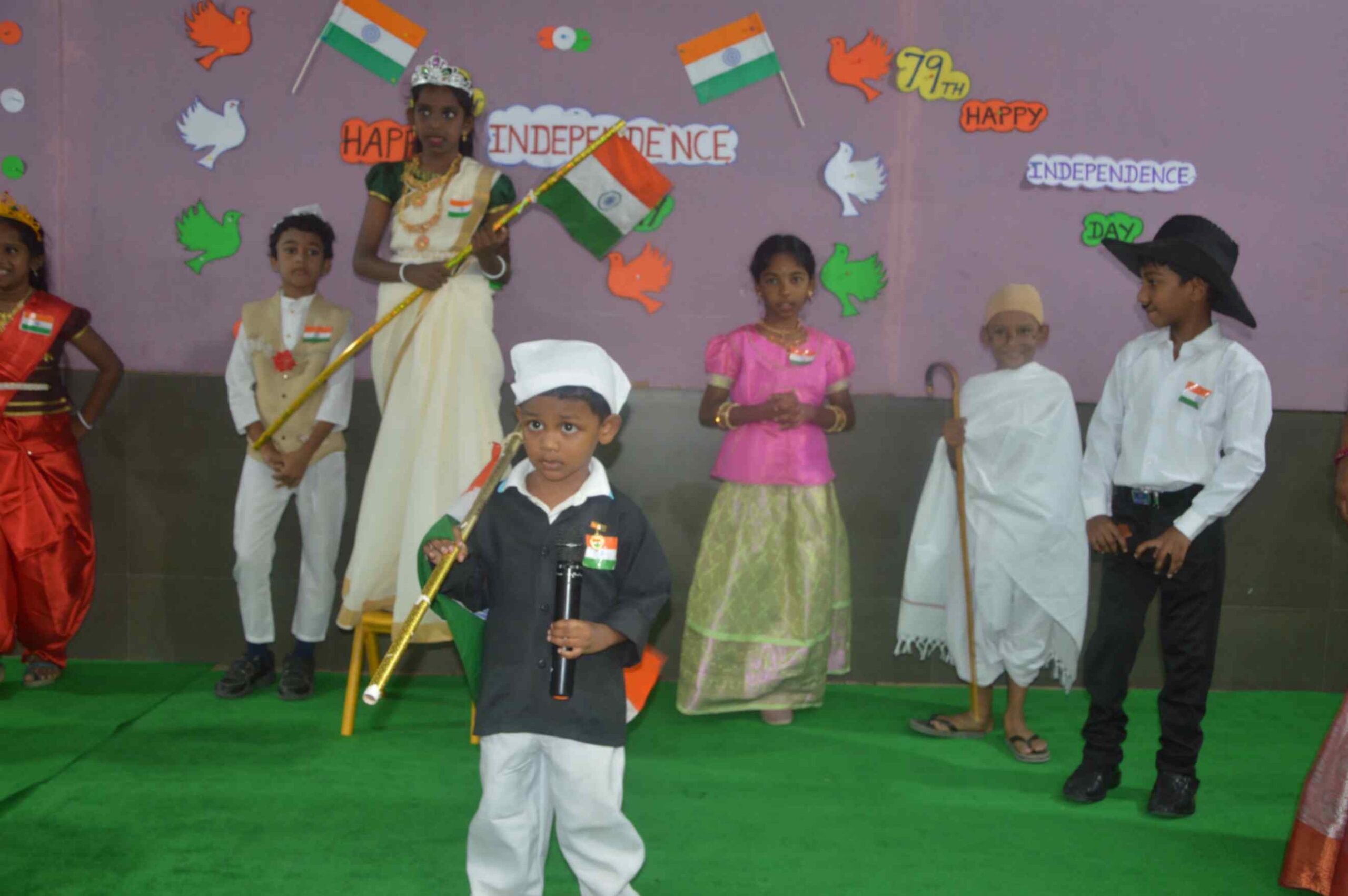 Mrs. Maheshwari, M.Sc., B.Ed., inspired all with her heartfelt speech about the true meaning of freedom and the vital role young citizens play in shaping our nation’s future. The celebration was further enlivened by powerful speeches, moving poetry, vibrant dances, a colourful fancy parade, and a thrilling Silambam demonstration. The entire program radiated the students’ deep love for the country and paid tribute to the sacrifices of our freedom fighters, making it an unforgettable and proud occasion for the whole school community.