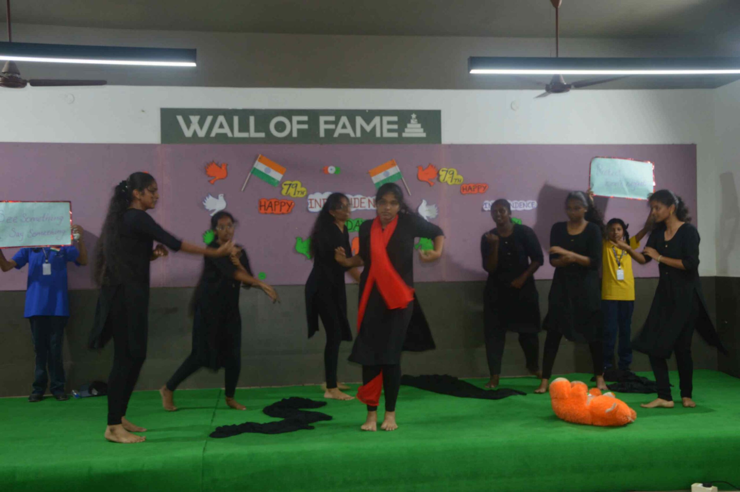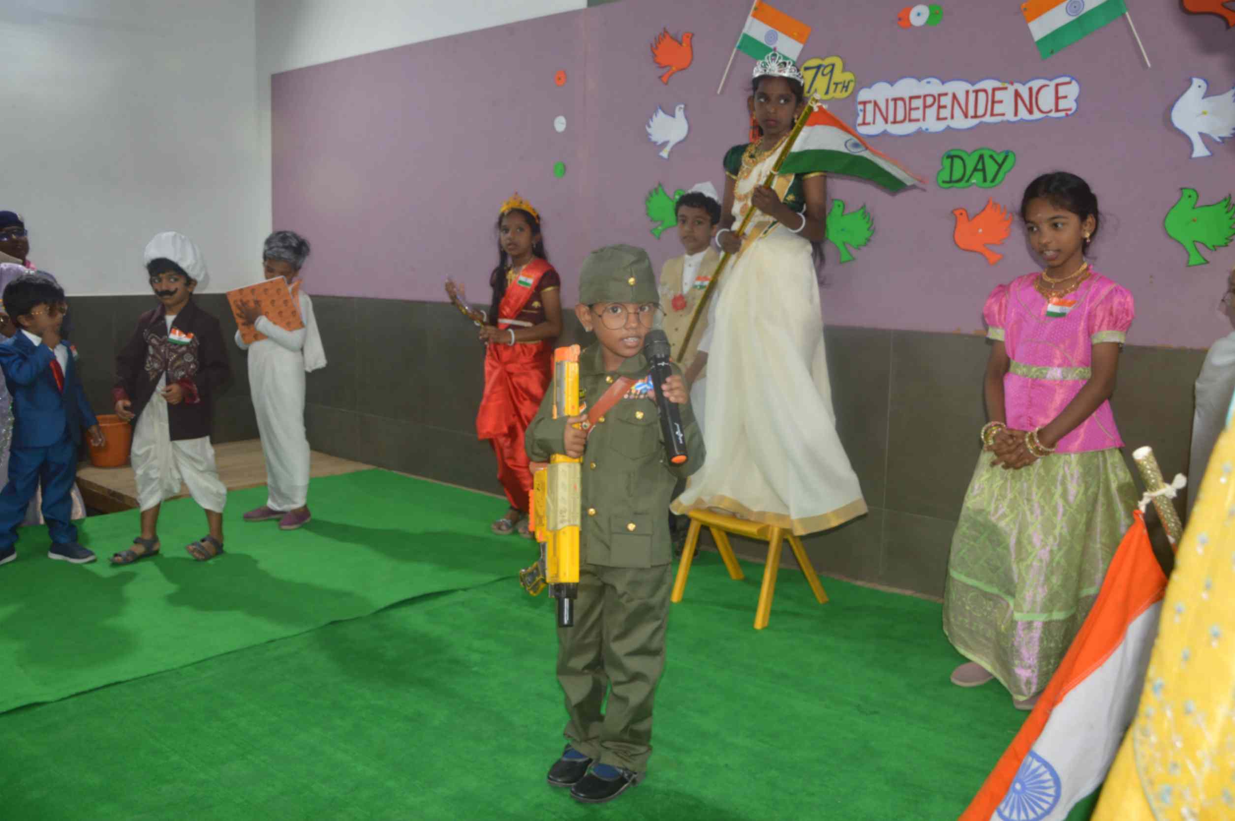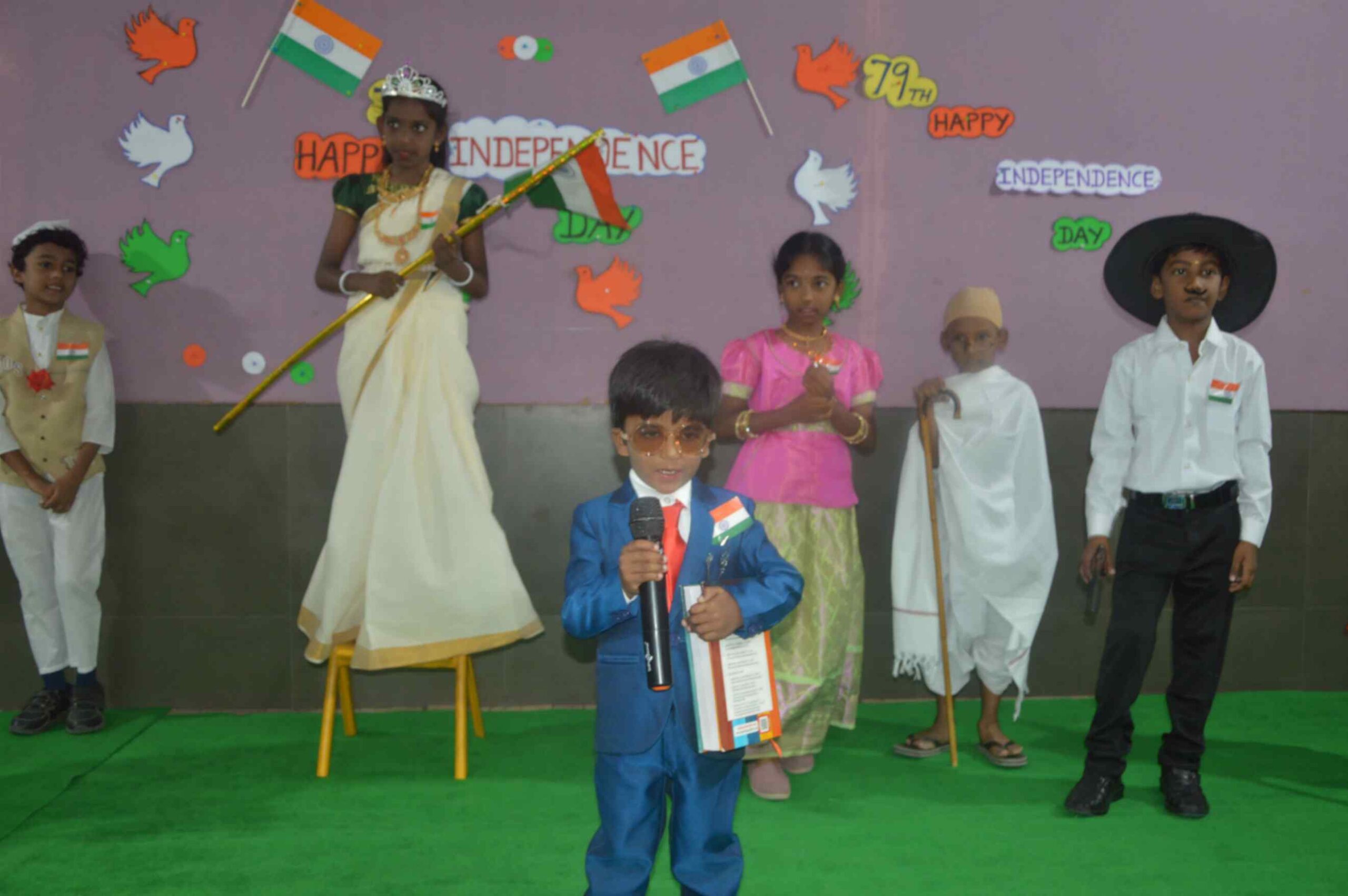 Mrs. Maheshwari, M.Sc., B.Ed., inspired all with her heartfelt speech about the true meaning of freedom and the vital role young citizens play in shaping our nation’s future. The celebration was further enlivened by powerful speeches, moving poetry, vibrant dances, a colourful fancy parade, and a thrilling Silambam demonstration. The entire program radiated the students’ deep love for the country and paid tribute to the sacrifices of our freedom fighters, making it an unforgettable and proud occasion for the whole school community.