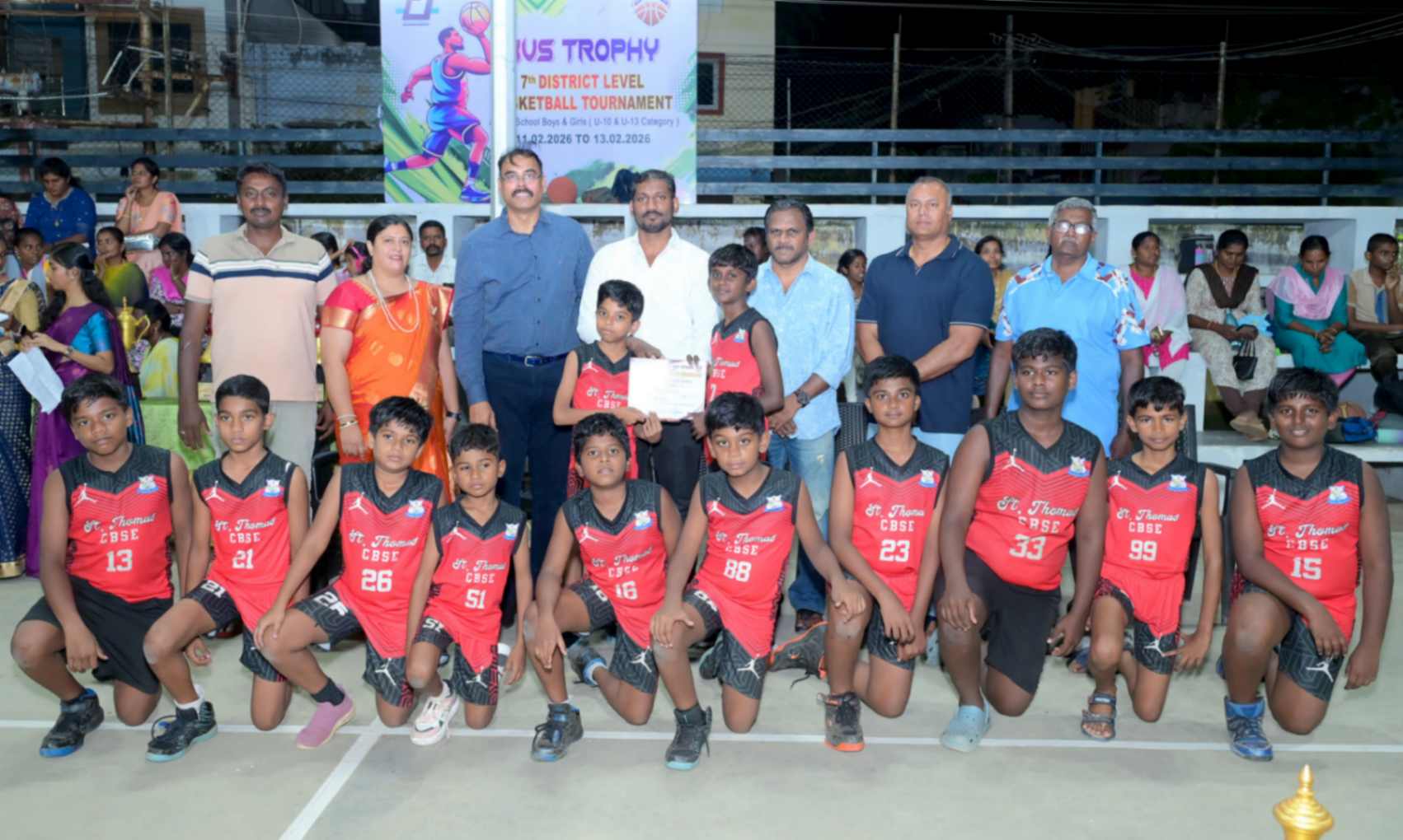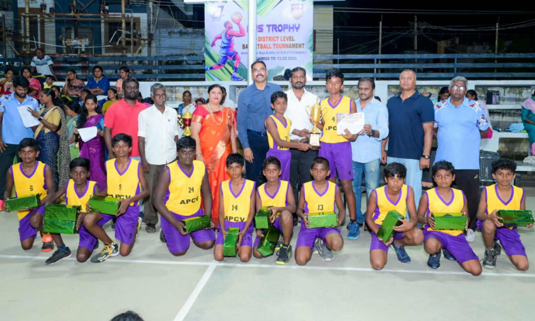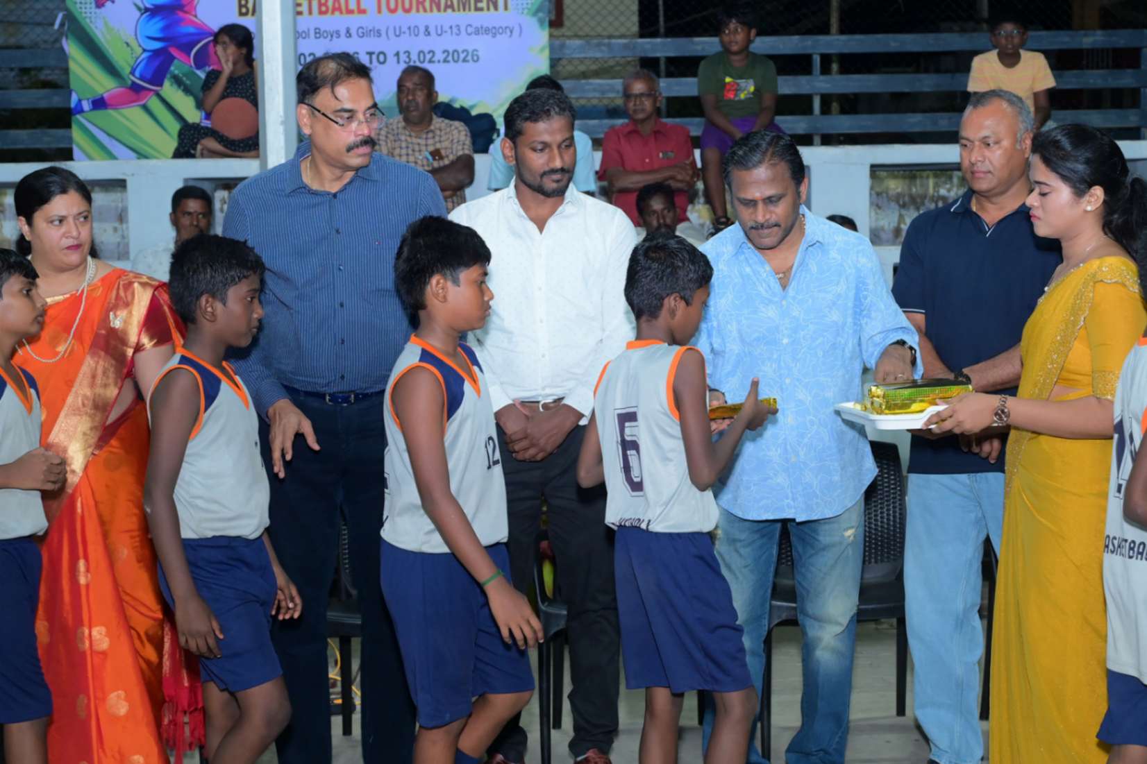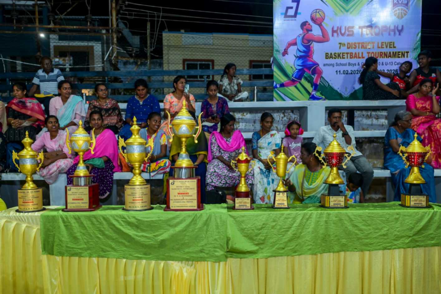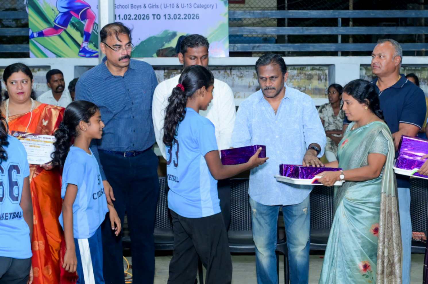 From 11.02.2026 to 13.02.2026, the 7th District Level Basketball Tournament for the KVS Trophy was successfully organized for school Boys and Girls under the U-10 and U-13 categories at the V.N.M.A.D. Ramakrishnan B.E Memorial Flood Light Basketball Court. The three-day tournament witnessed energetic participation from various schools, showcasing remarkable teamwork, sportsmanship, and competitive spirit. The valedictory function was held on 13.02.2026, with Mr. T. Vishakesh, Proprietor, M/s. T.K.R. Sugars, Tuticorin, gracing the occasion as the Chief Guest and distributing the awards to the winners. The event concluded on a grand note, celebrating young talent and encouraging students to excel in sports.