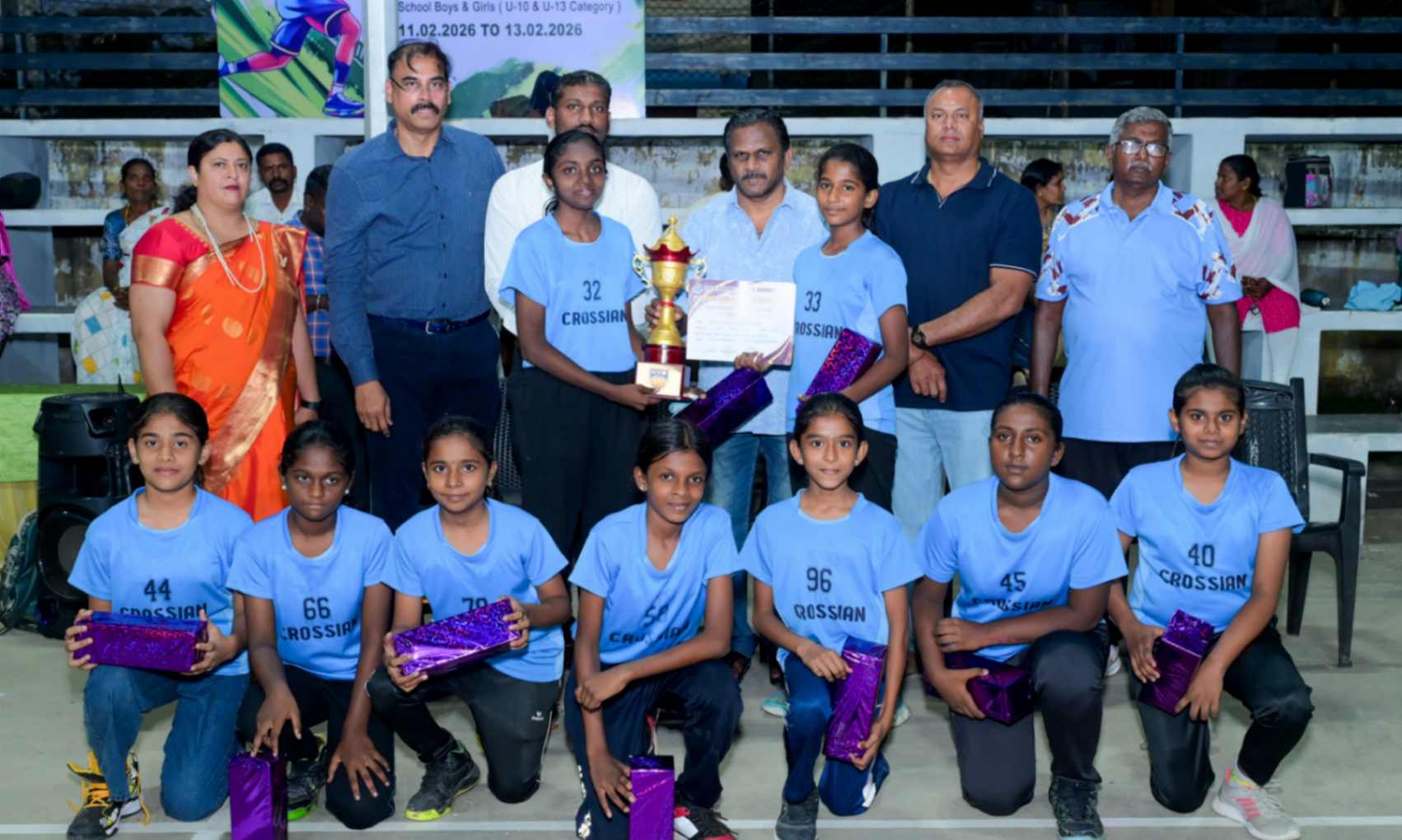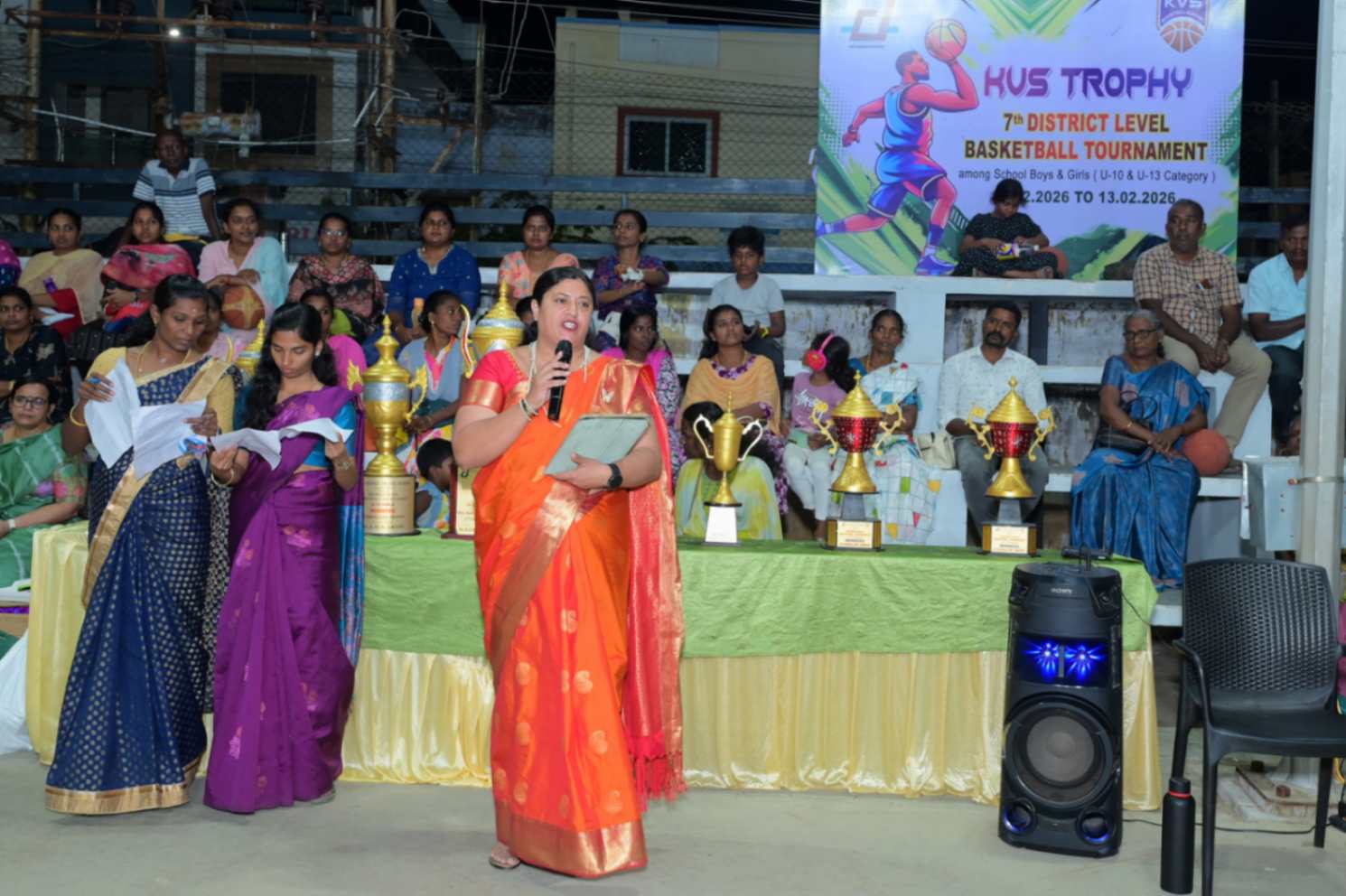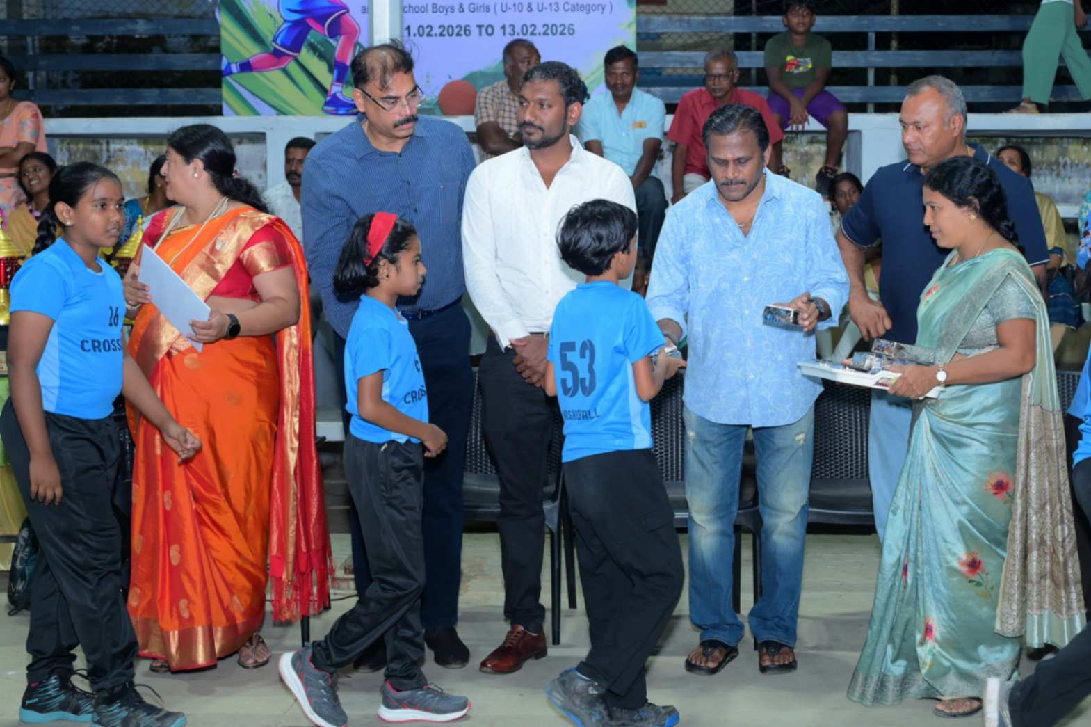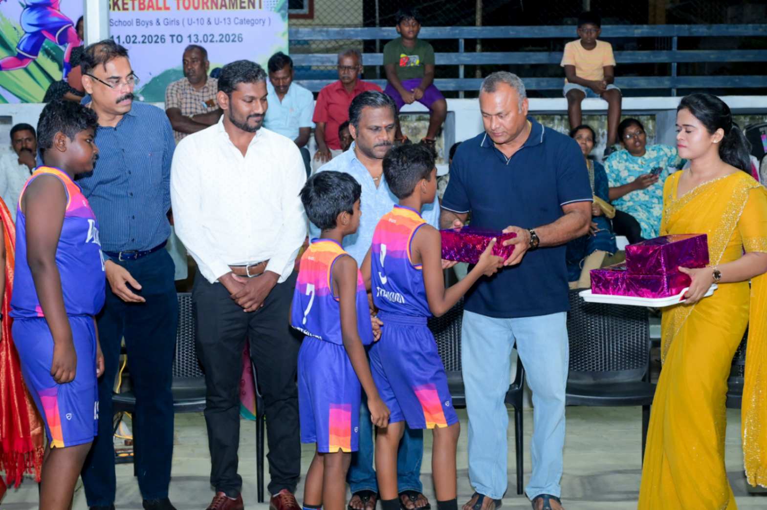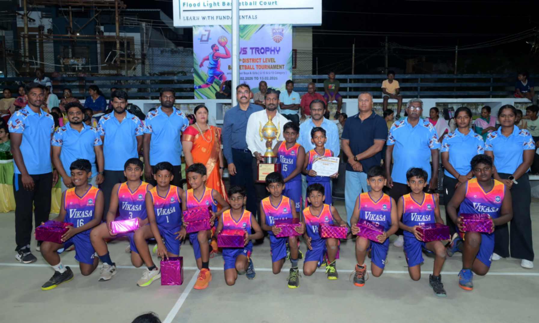 From 11.02.2026 to 13.02.2026, the 7th District Level Basketball Tournament for the KVS Trophy was successfully organized for school Boys and Girls under the U-10 and U-13 categories at the V.N.M.A.D. Ramakrishnan B.E Memorial Flood Light Basketball Court. The three-day tournament witnessed energetic participation from various schools, showcasing remarkable teamwork, sportsmanship, and competitive spirit. The valedictory function was held on 13.02.2026, with Mr. T. Vishakesh, Proprietor, M/s. T.K.R. Sugars, Tuticorin, gracing the occasion as the Chief Guest and distributing the awards to the winners. The event concluded on a grand note, celebrating young talent and encouraging students to excel in sports.