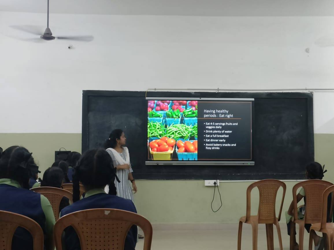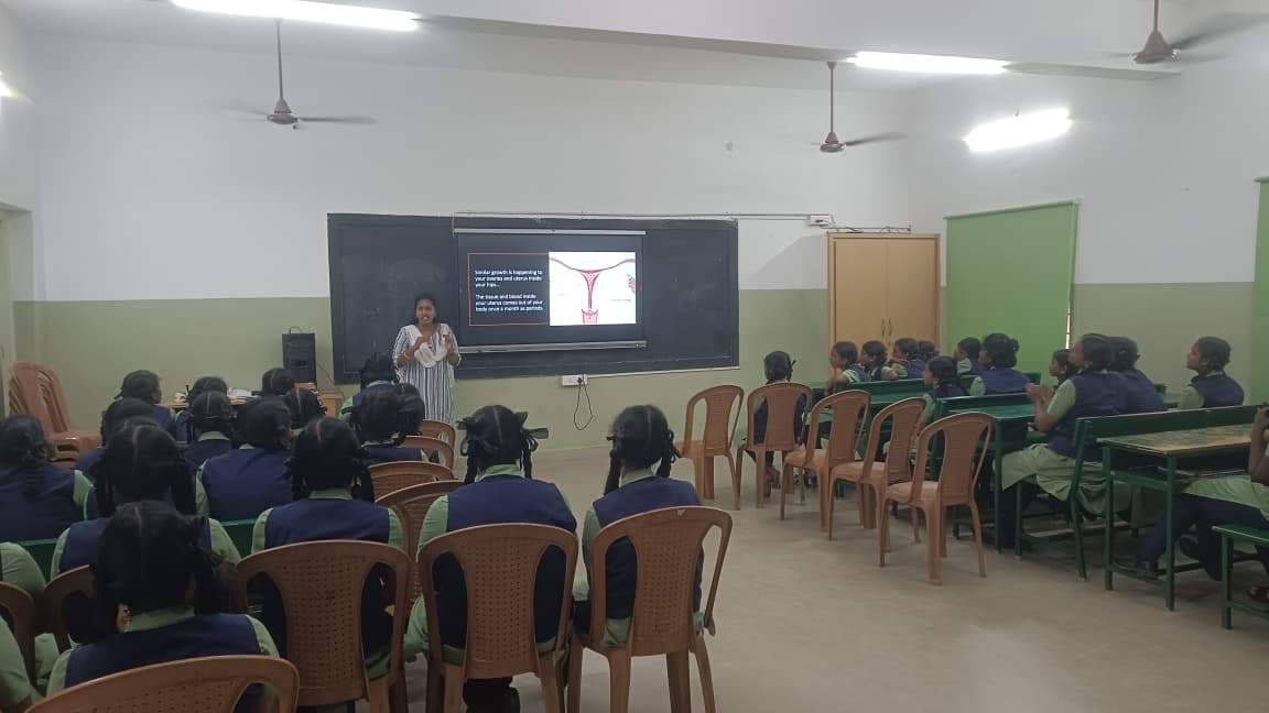 The Spark Meeting held on 28.11.2025 focused on the vital topic of Menstrual Hygiene, led by our respected resource person, Mrs. Malar Subramanian, who enlightened the students of Girls of STD VI to XII with essential knowledge on maintaining personal hygiene during menstruation. She emphasised that good hygiene is not an option but a habit that shapes healthy living, and through simple examples and clear explanations, she encouraged them to be confident, informed, and responsible about their health. She also highlighted the importance of breaking myths and speaking openly about menstruation, reminding them that knowledge removes fear and awareness builds confidence. The session was interactive, informative, and truly empowering, helping the students understand the significance of self-care and dignity.”
