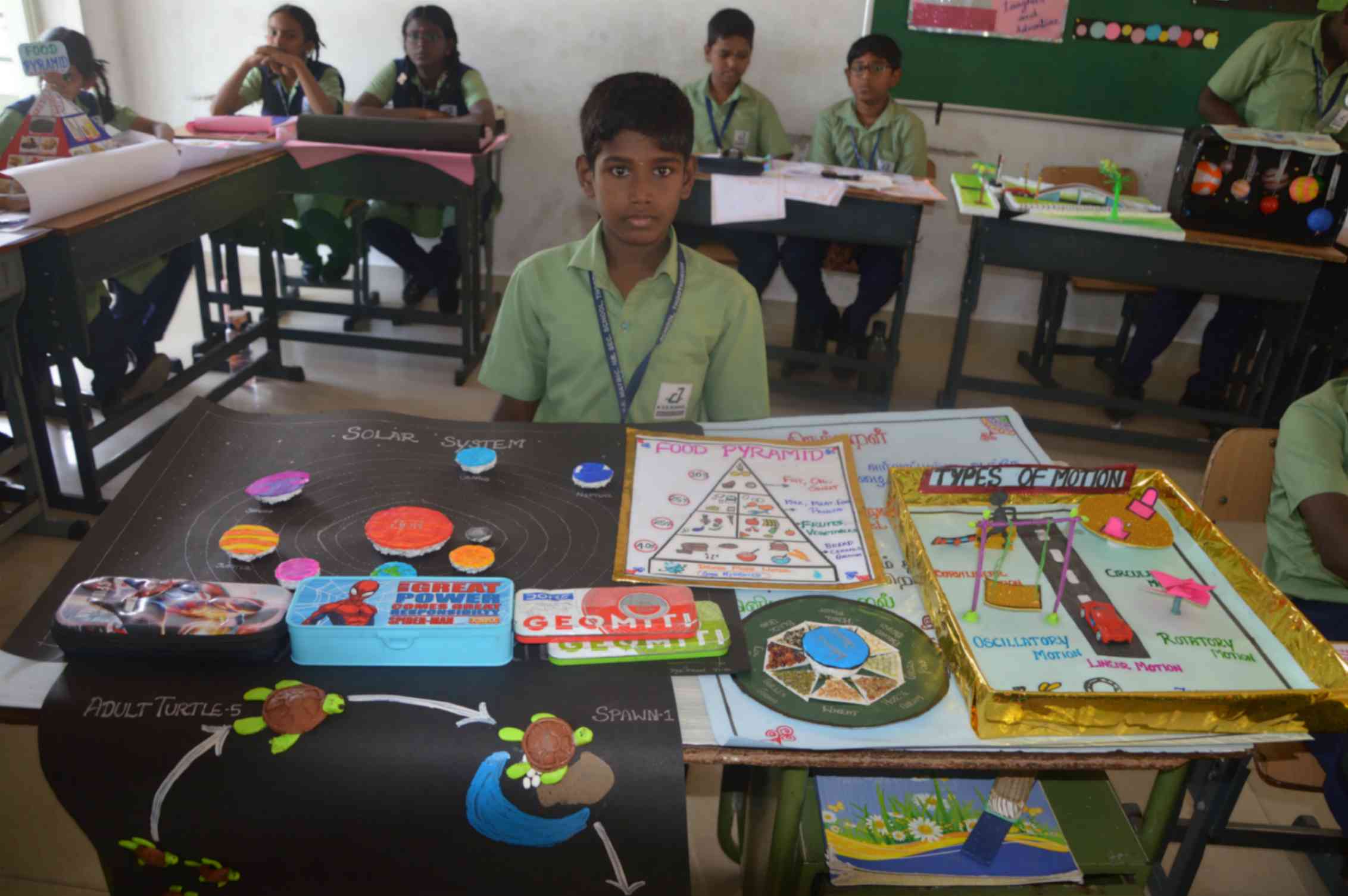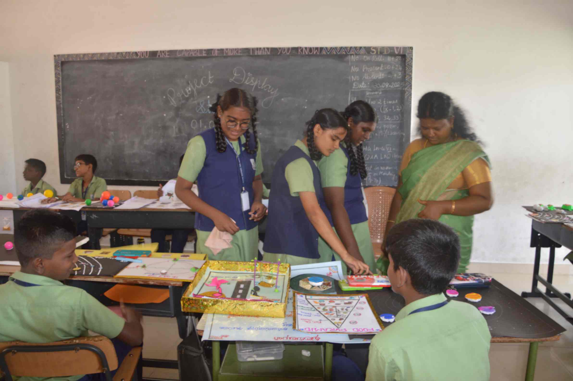 On 01.09.2025, our school hosted a Project Exhibition for students of STD I to VII, creating an excellent opportunity for them to present their ideas and learning. Each teacher assigned unique projects to every student, guiding them to understand the concepts clearly. During the display, teachers engaged the students by asking thoughtful questions related to their projects, encouraging critical thinking and deeper understanding. The students took part with great interest, confidently explained their work, and turned the event into a true celebration of knowledge and curiosity.